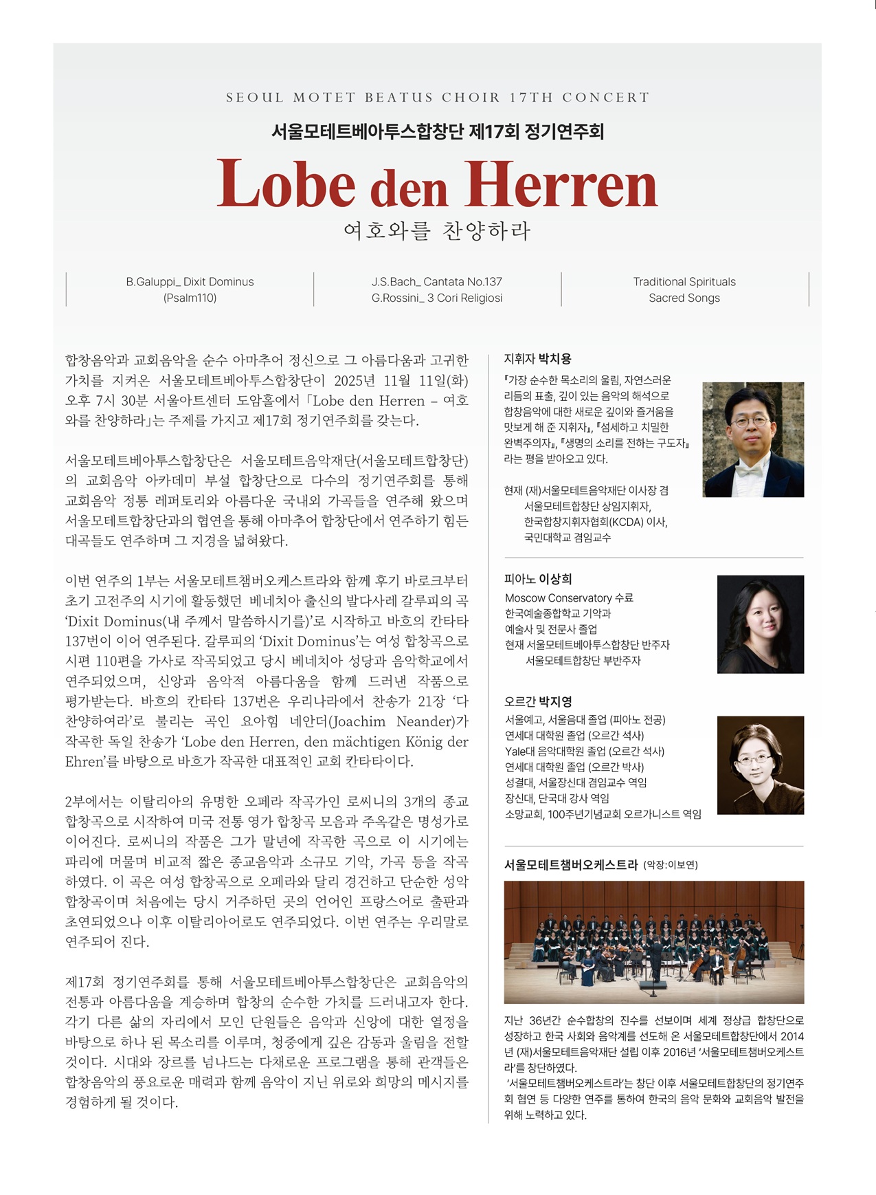 ¼¿ï¸ðÅׯ®º£¾ÆÅõ½ºÇÕâ´Ü Á¦17ȸ Á¤±â¿¬ÁÖȸ <Lobe den Herren ¿©È£¿Í¸¦ Âù¾çÇ϶ó>