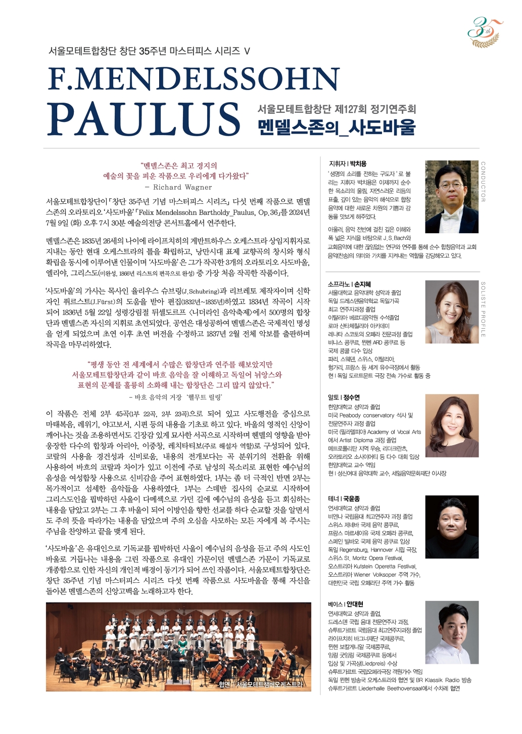 [¼¿ï¸ðÅׯ®ÇÕâ´Ü] Á¦127ȸ Á¤±â¿¬ÁÖȸ F. Mendelssohn_Paulus <¸àµ¨½ºÁ¸ÀÇ »çµµ¹Ù¿ï>