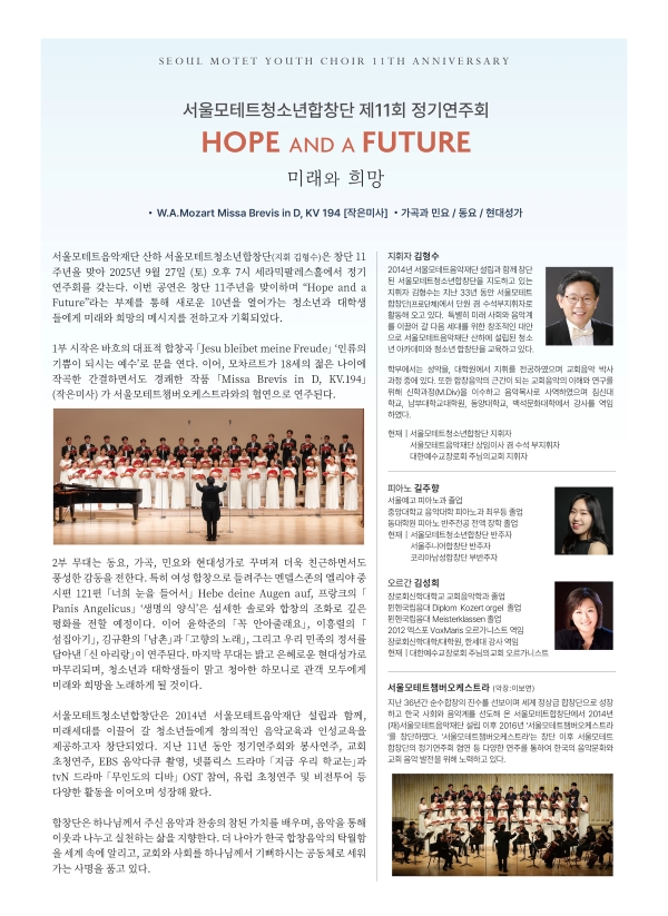 [¼¿ï¸ðÅׯ®Ã»¼Ò³âÇÕâ´Ü] Á¦11ȸ Á¤±â¿¬ÁÖȸ Hope and a Future